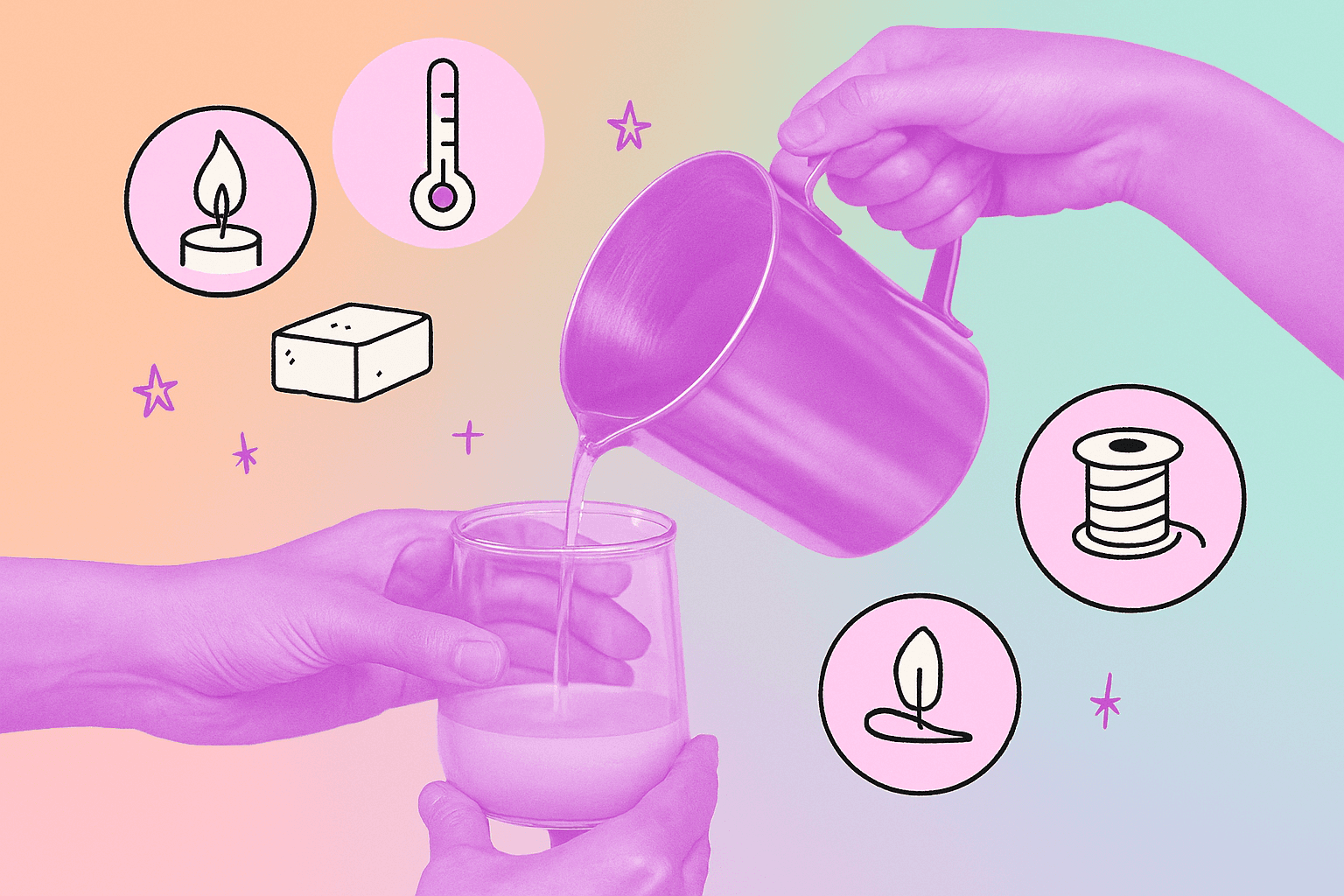 Step-by-step creation of a basic container candle. Cover wax melting temperatures, fragrance load calculations, proper pouring technique, and cooling procedures. Include troubleshooting for common beginner mistakes.